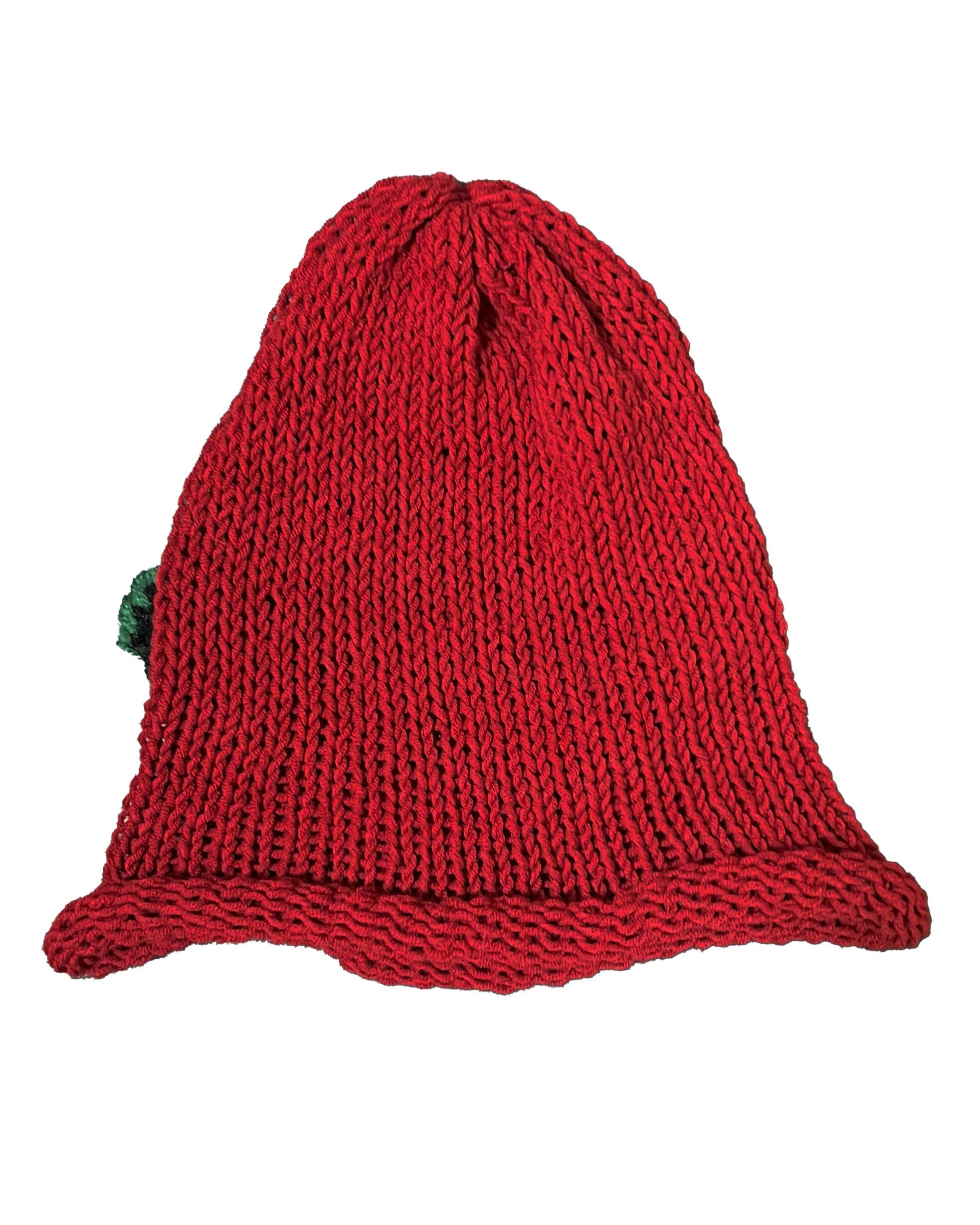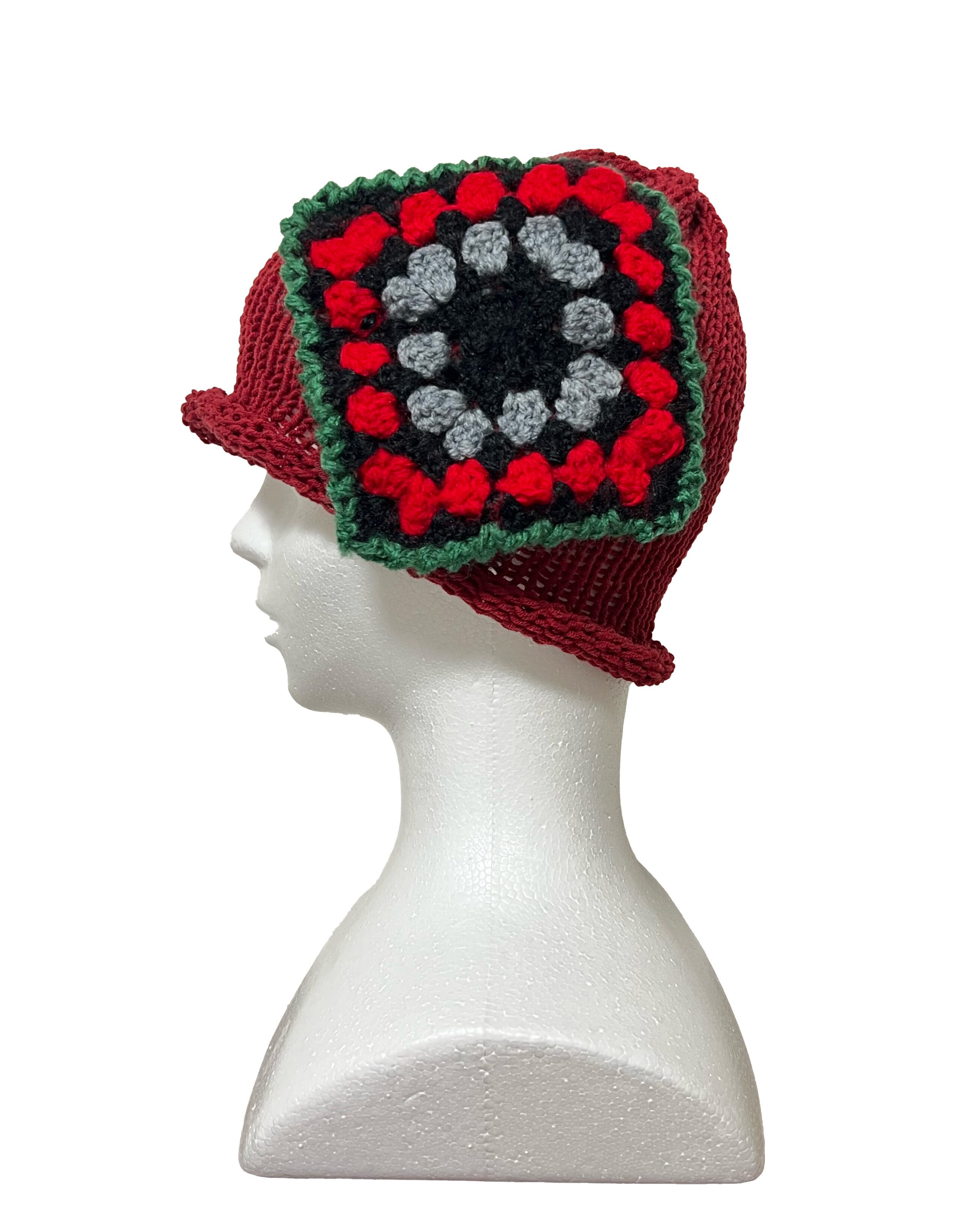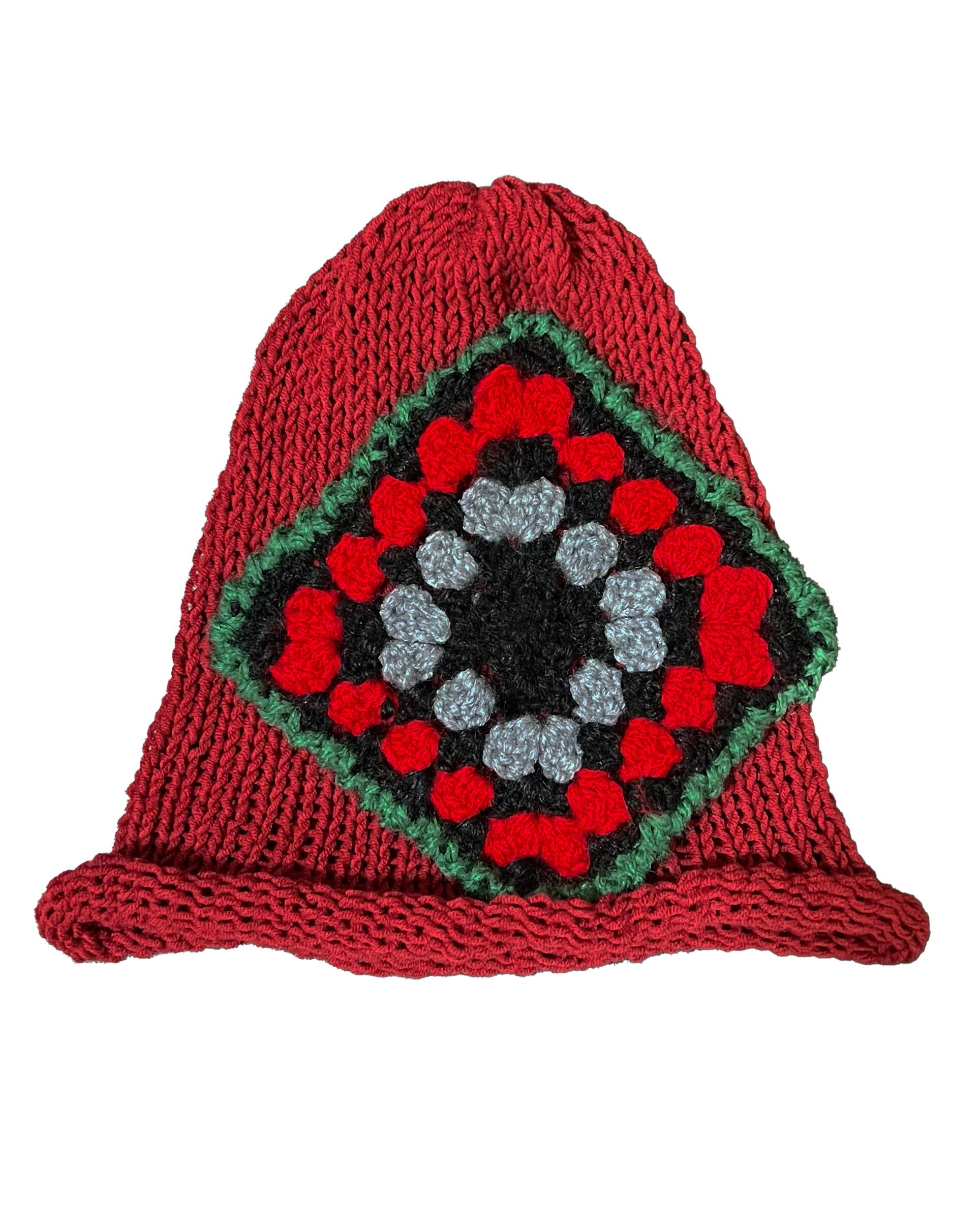 特徴: レトロな深い赤と、グラニースクエアがポイントのレトロなニットビーニー。
