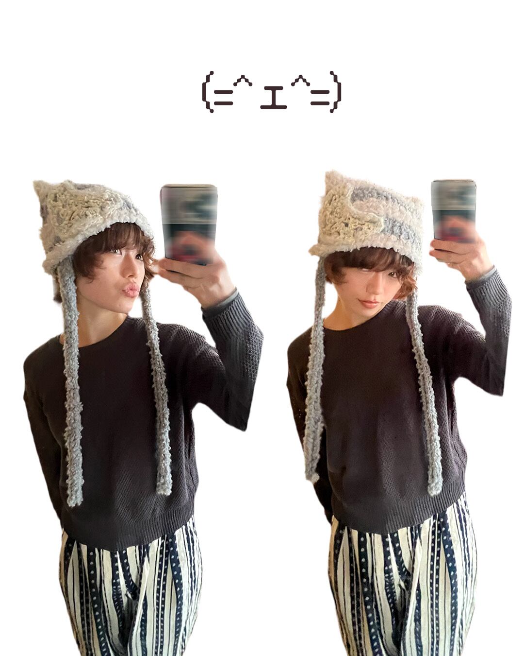 全長66cm/帽子部分縦18cm・横23–30cm/紐48cm