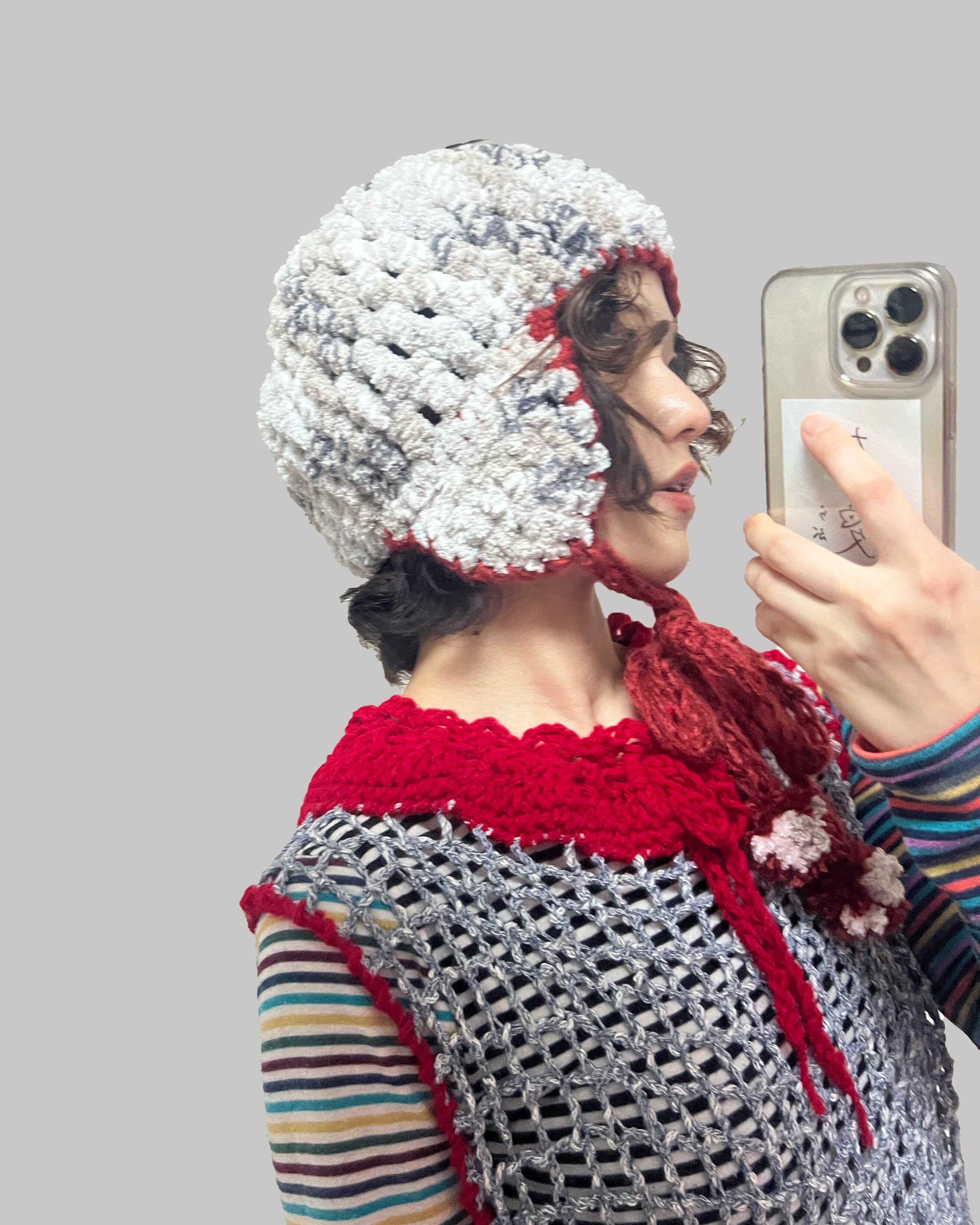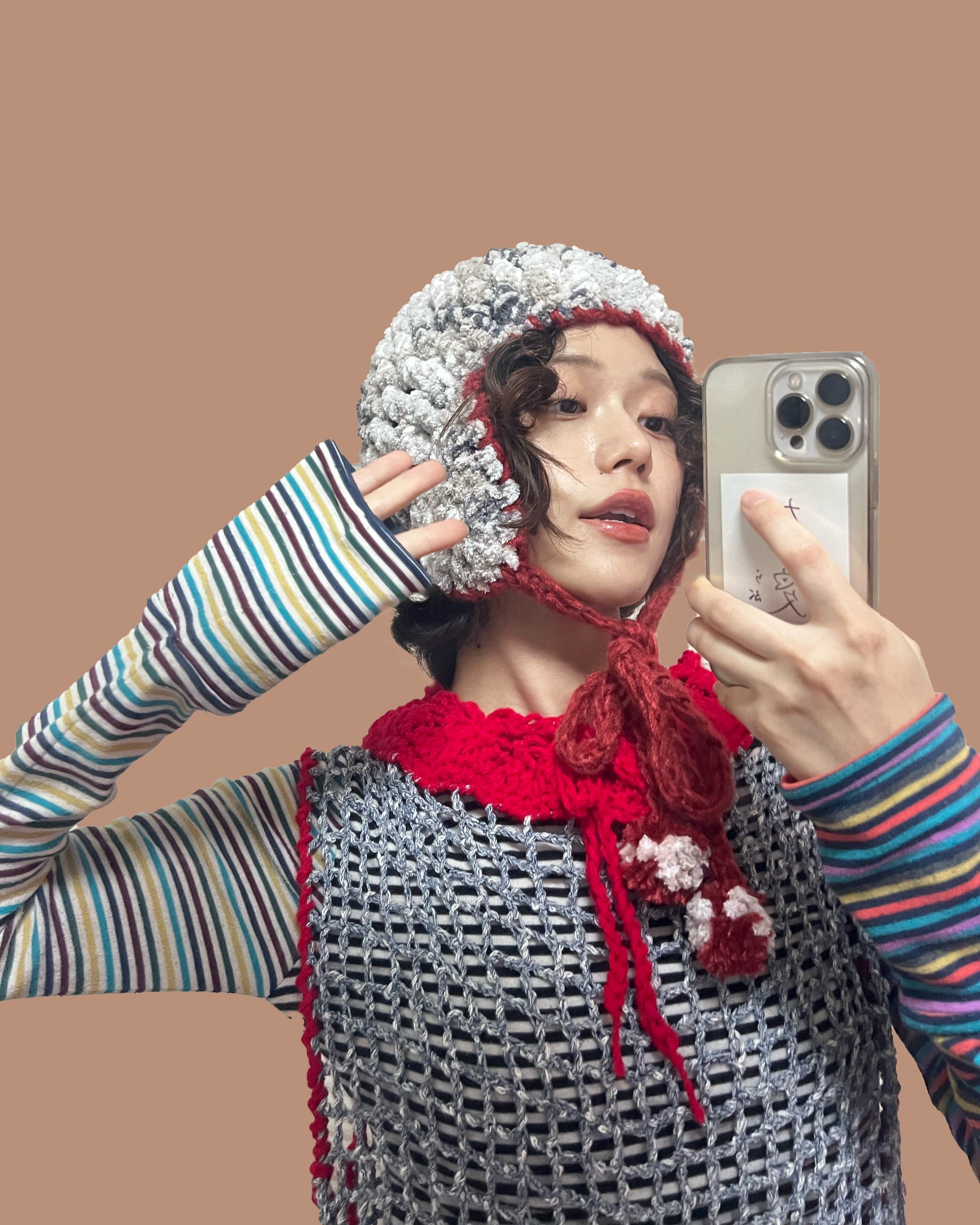 (着画あり) ヘルメット風のフライトキャップです。 紐を前で結ぶことができます。(ポンポン付き) 被るだけであったかいです^_^