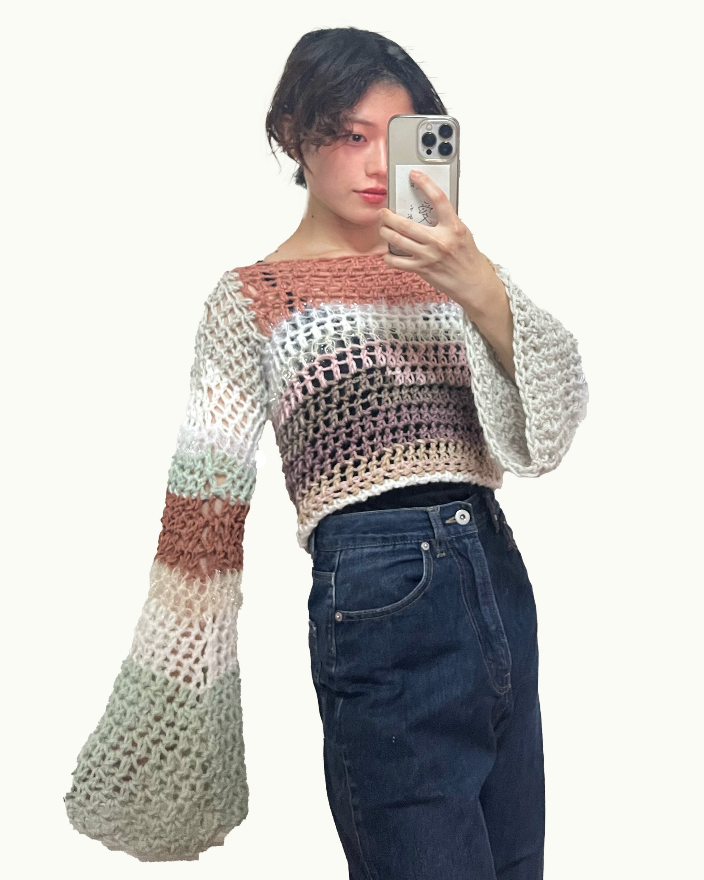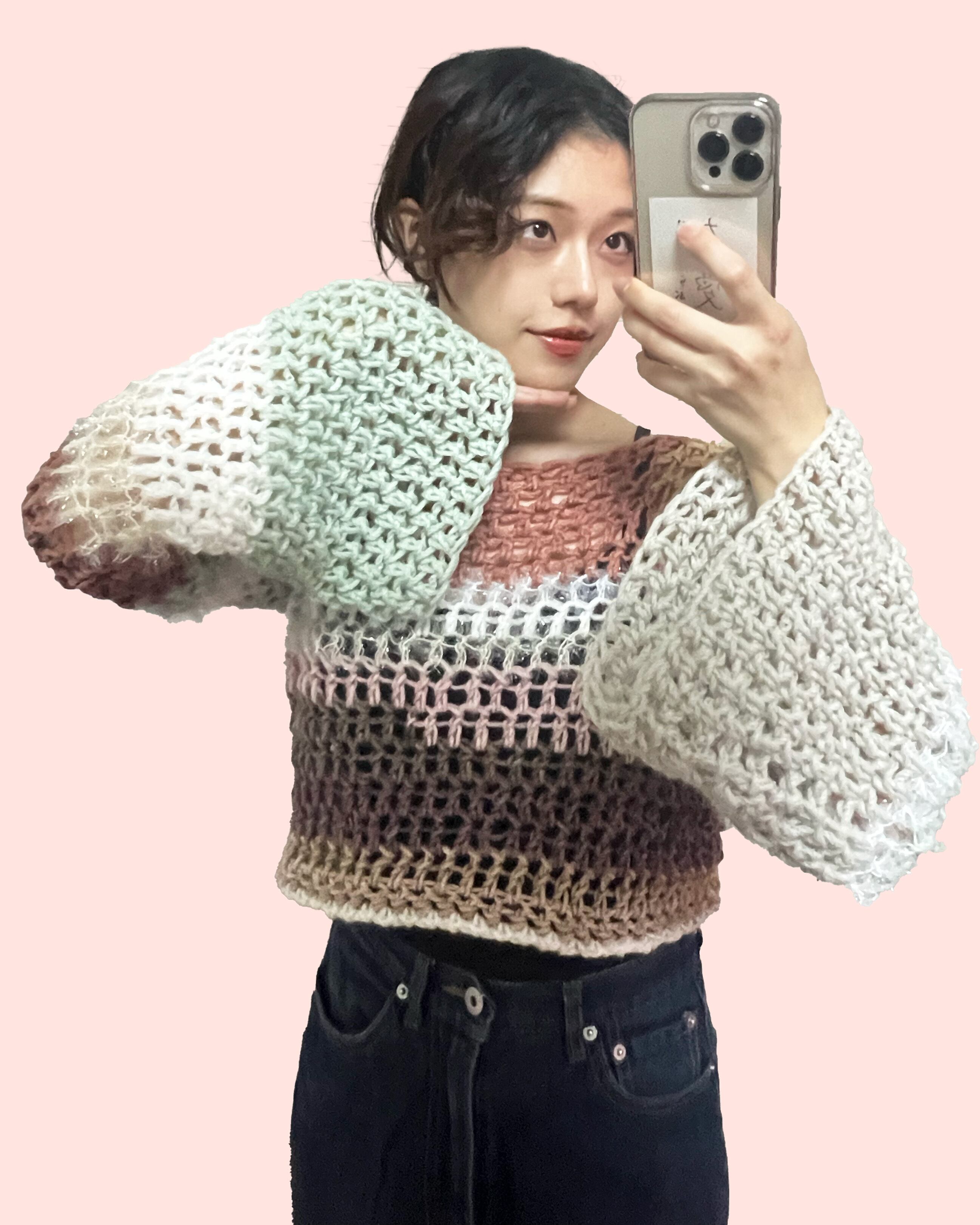 網目は大きめですが来てみるとすごく暖かいです〜。