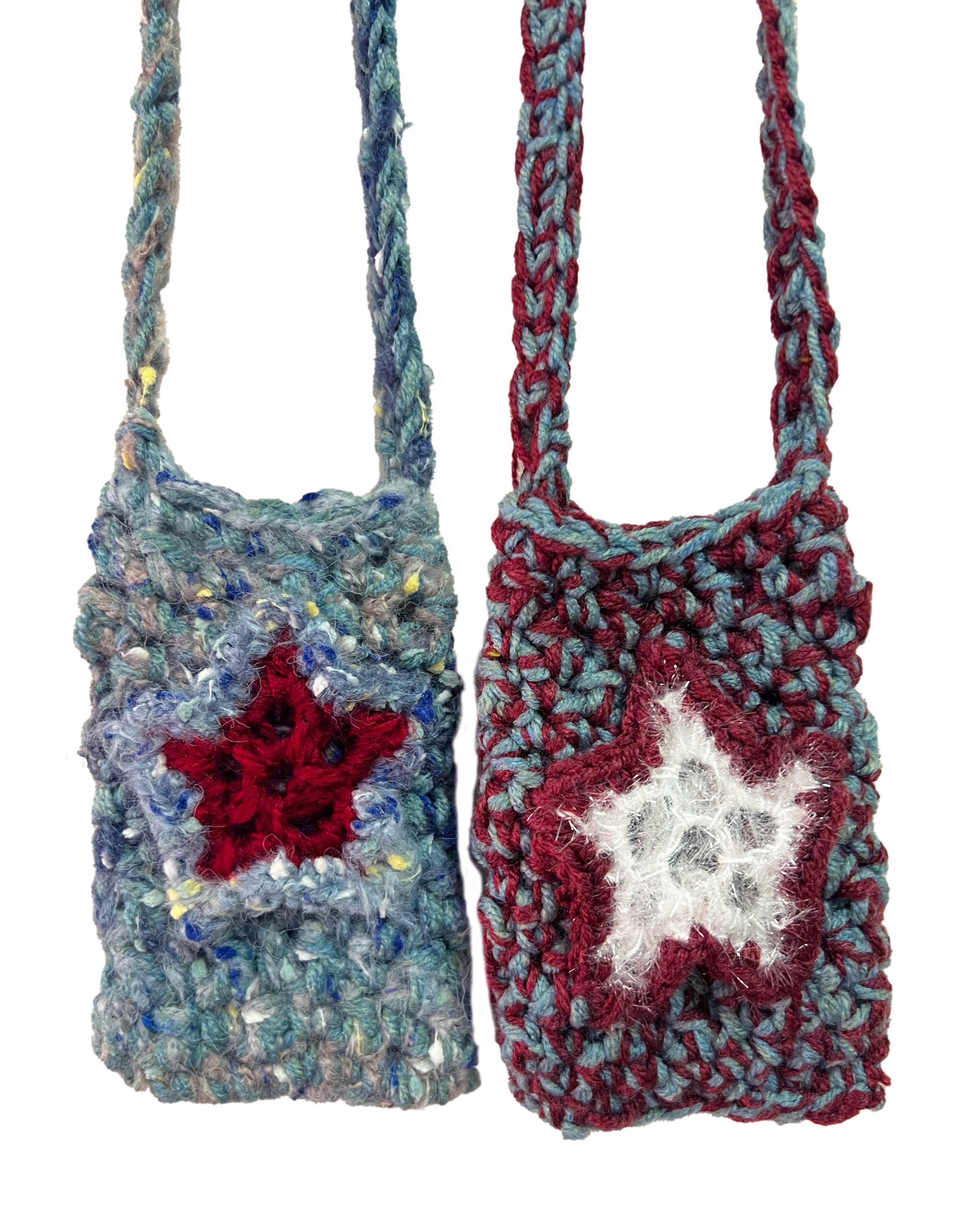 星モチーフがアクセントの手編みスマホケース。普段使いはもちろん、その日のファッションのワンポイントになります。